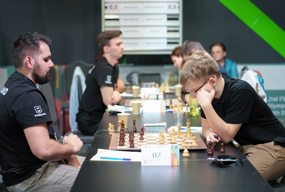 At the top of the standings, Poland and FIDE 1 drew their key match, keeping both teams in the lead with 9/10 team points. Just behind them are IBCA and IPCA, both with 8/10 points, making the race for gold very close before the final round.