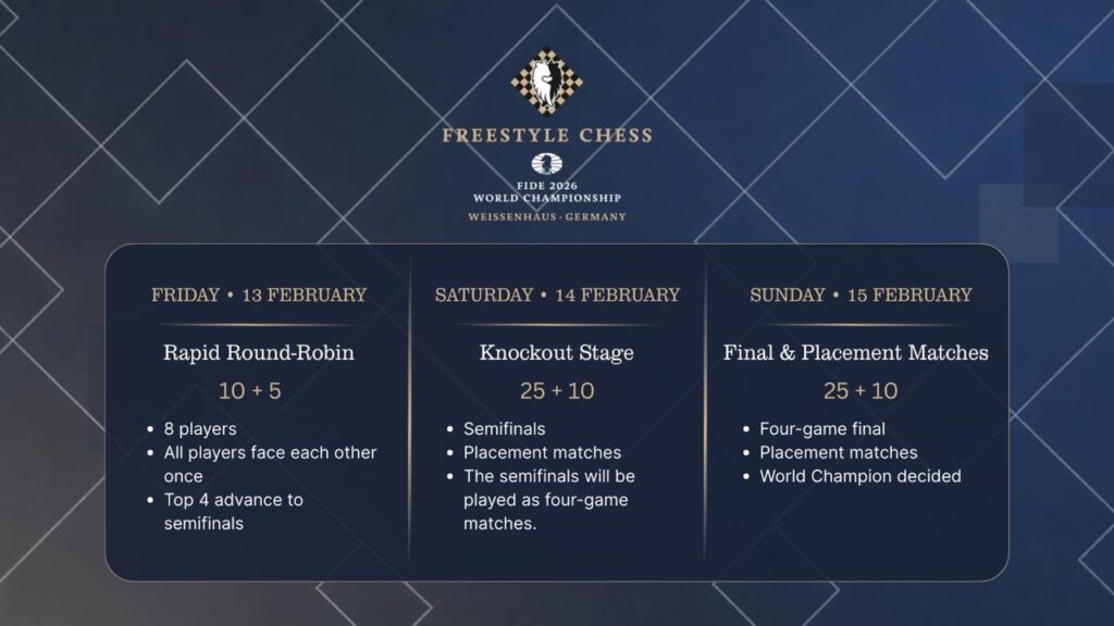 On January 7, 2026, FIDE and Freestyle Chess signed a cooperation agreement. This agreement officially approved the first joint World Championship in the Freestyle format. It also confirmed that no event can be called a “World Chess Championship” in any format without FIDE’s written approval.
