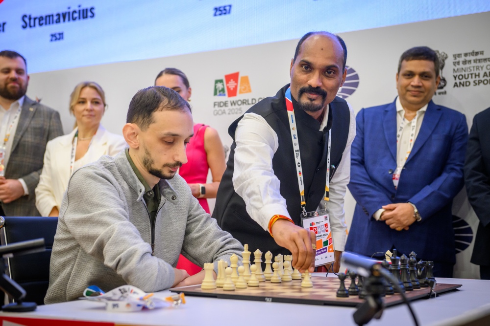 The round began with a ceremonial opening by Sanjiv M. Gadkar IAS, Secretary Protocol, Government of Goa. Tomorrow, the Chief Minister of Goa is expected to make the honorary first move for World Champion Gukesh D. — a special moment for Indian chess fans.