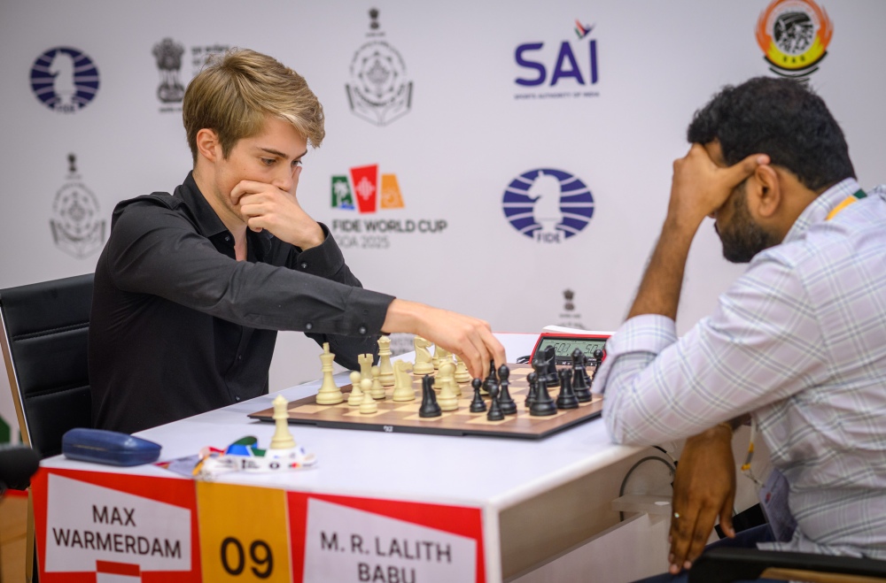 GM Max Warmerdam (Netherlands) edged GM Lalit Babu M R (India) in a wild back-and-forth match.