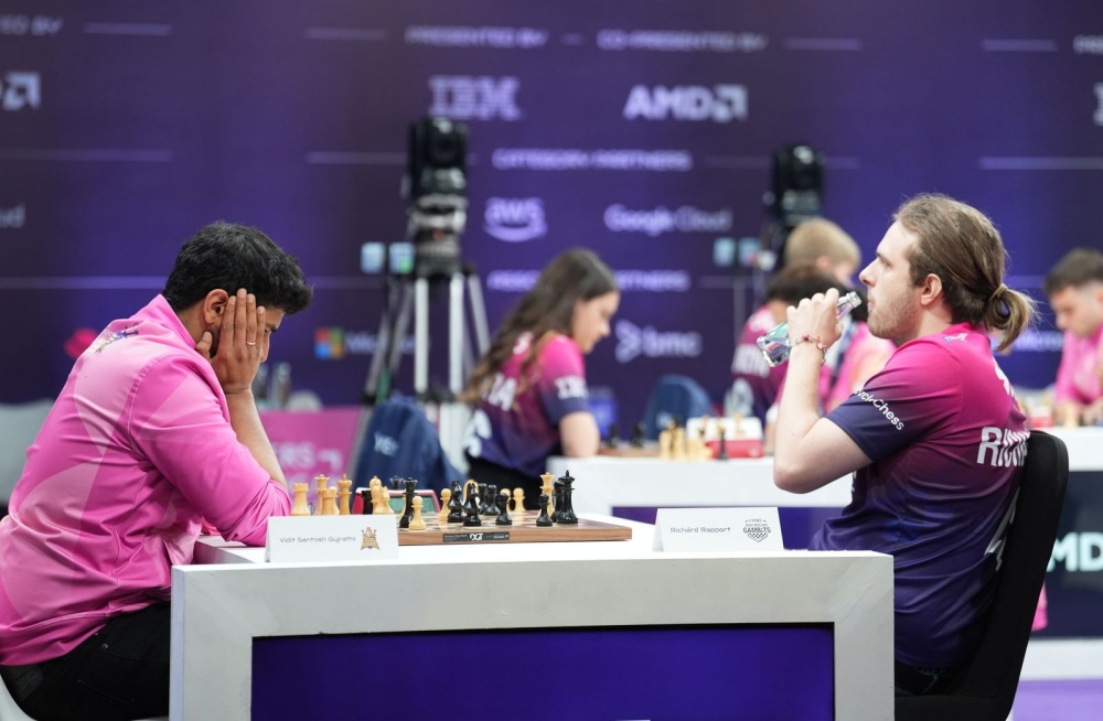 Richard Rapport gave the Gambits an early lead by defeating Vidit Gujrathi with a smooth positional game. Triveni responded when Alexandra Kosteniuk won a sharp encounter and even delivered a rare pawn checkmate.