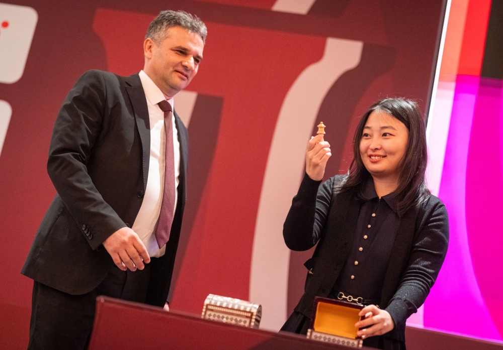 The press conference ended with the traditional drawing of lots to determine which players will use white or black pieces. Magnus Carlsen drew white for the Rapid and black for the Blitz. Ju Wenjun drew black for the Rapid and white for the Blitz.