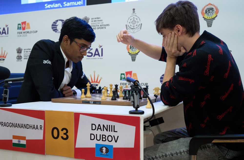 One of the day’s biggest upsets came from GM Daniil Dubov (2684). He knocked out India’s star and former World Cup finalist, GM Praggnanandhaa R (2771).